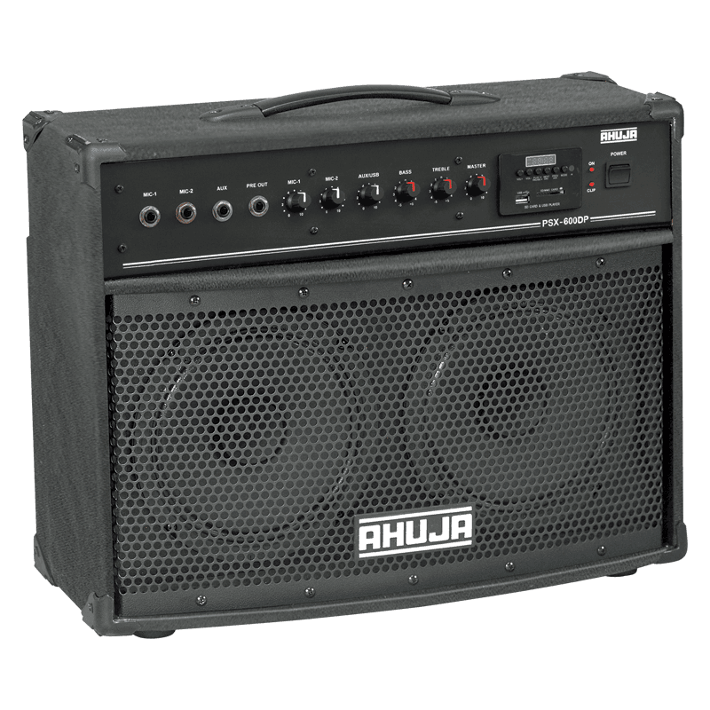 PSX-600DP has a built-in power amplifier with multiple inputs for use in a wide variety of PA and musical instrument applications. Built-in MP3 player is useful for music applications for small gatherings. It operates on both AC mains as well as a 12V car battery making it ideal for use both indoors and outdoors. Ideal for Musical and Vocal Performances, Small Outdoor Gatherings, Religious Discourses, Lectures, Presentations.