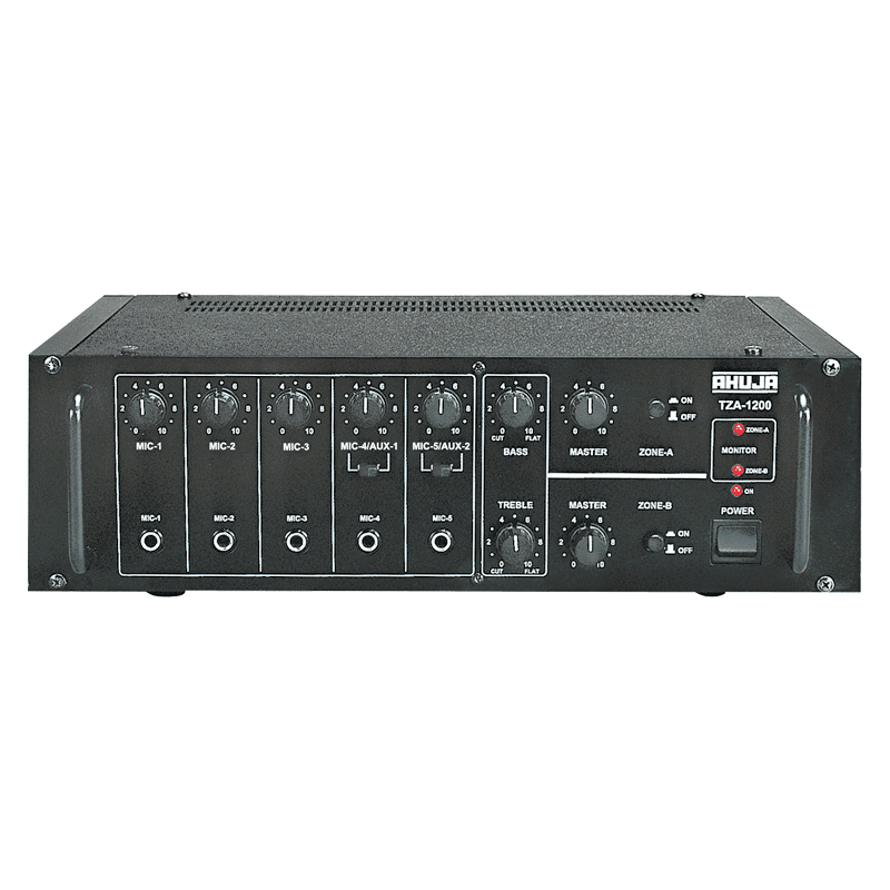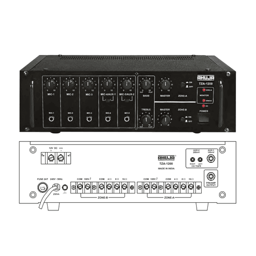 Ahuja TZA-1200 is suitable for small sized installations such as in places of worship where both external and internal speakers are required to be connected with different sound level settings.