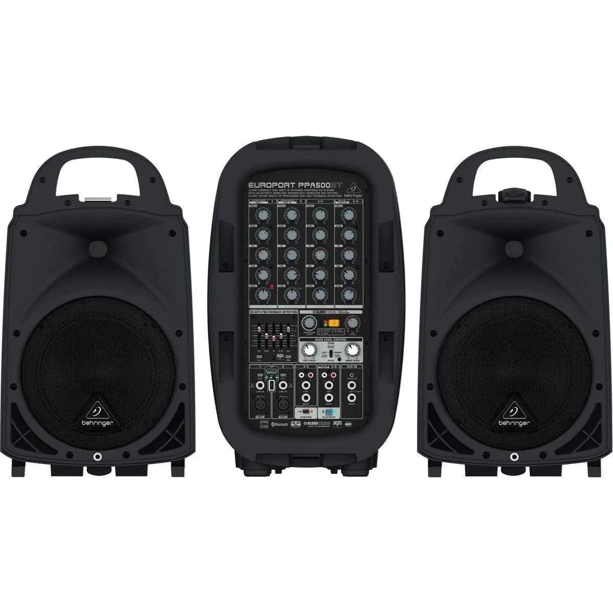 The EUROPORT PPA500BT packs amazing power and sound quality into a compact, portable suitcase-style PA system is that fast and easy to set up. The PPA500BT integrated 6-channel mixer has enough inputs for 2 microphones, 2 musical instruments, your favorite MP3 player and more ‚making it ideal for parties, schools, corporate and educational presentations, working musicians and even weddings. Built-in Bluetooth connectivity allows you to stream music from your smart-phone, tablet or other Bluetooth-equipped device. Best of all, the PPA500BT is wireless ready‚ for our high-quality ULM Series digital microphones, so you can become completely mobile. This powerful, 500-Watt marvel also features theme de la me of professional vocal effects from world-famous KLARK TEKNIK and our amazing FBQ Feedback Detection System for the ultimate freedom from feedback. We've even included a high-quality microphone, and all the cables and accessories you need, so you're ready to go right-out-of-the-box!