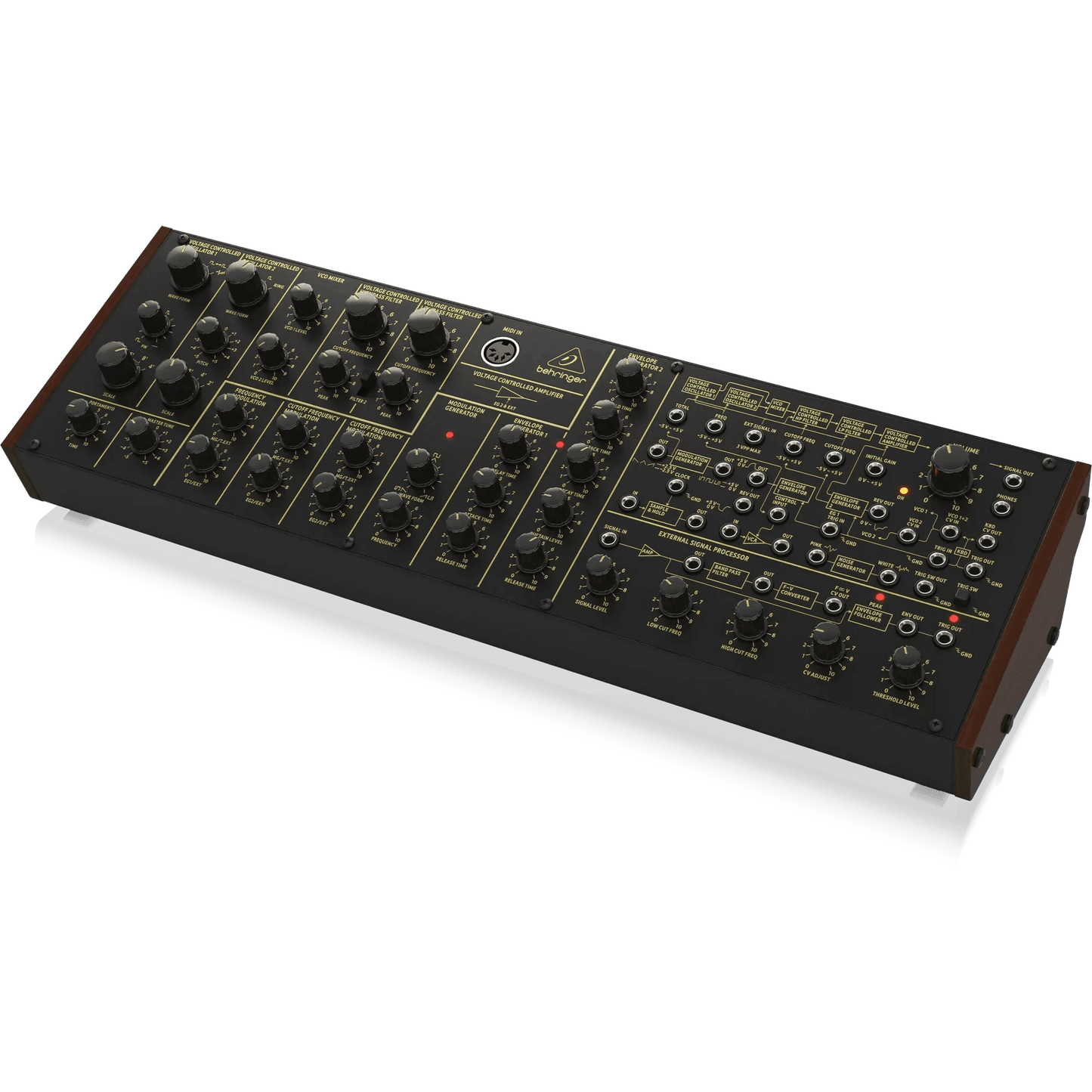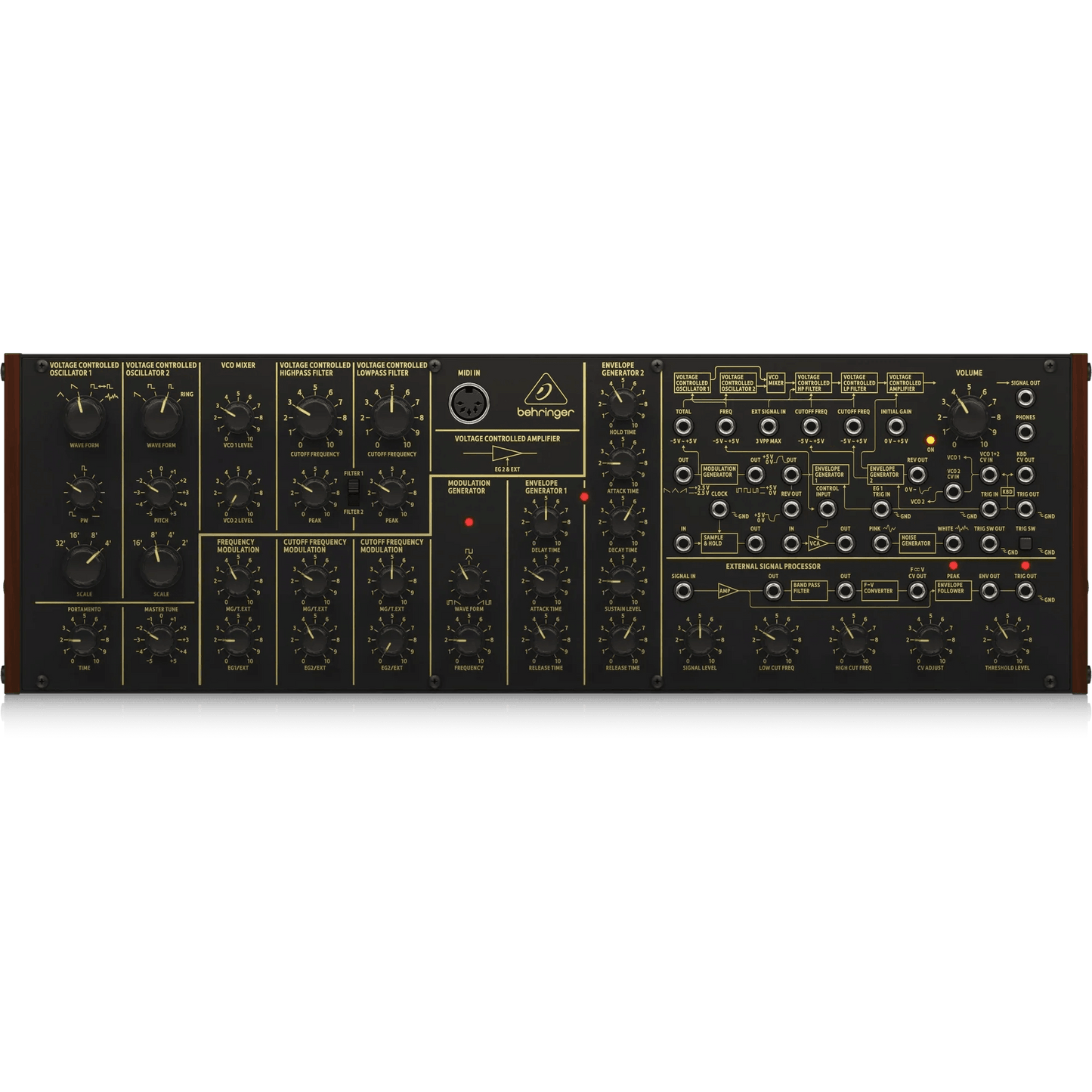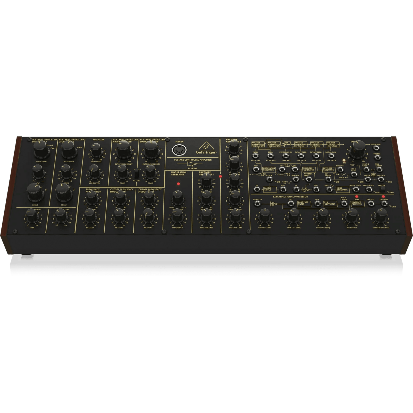 - Pure analog signal path based on authentic VCO, VCF and VCA designs