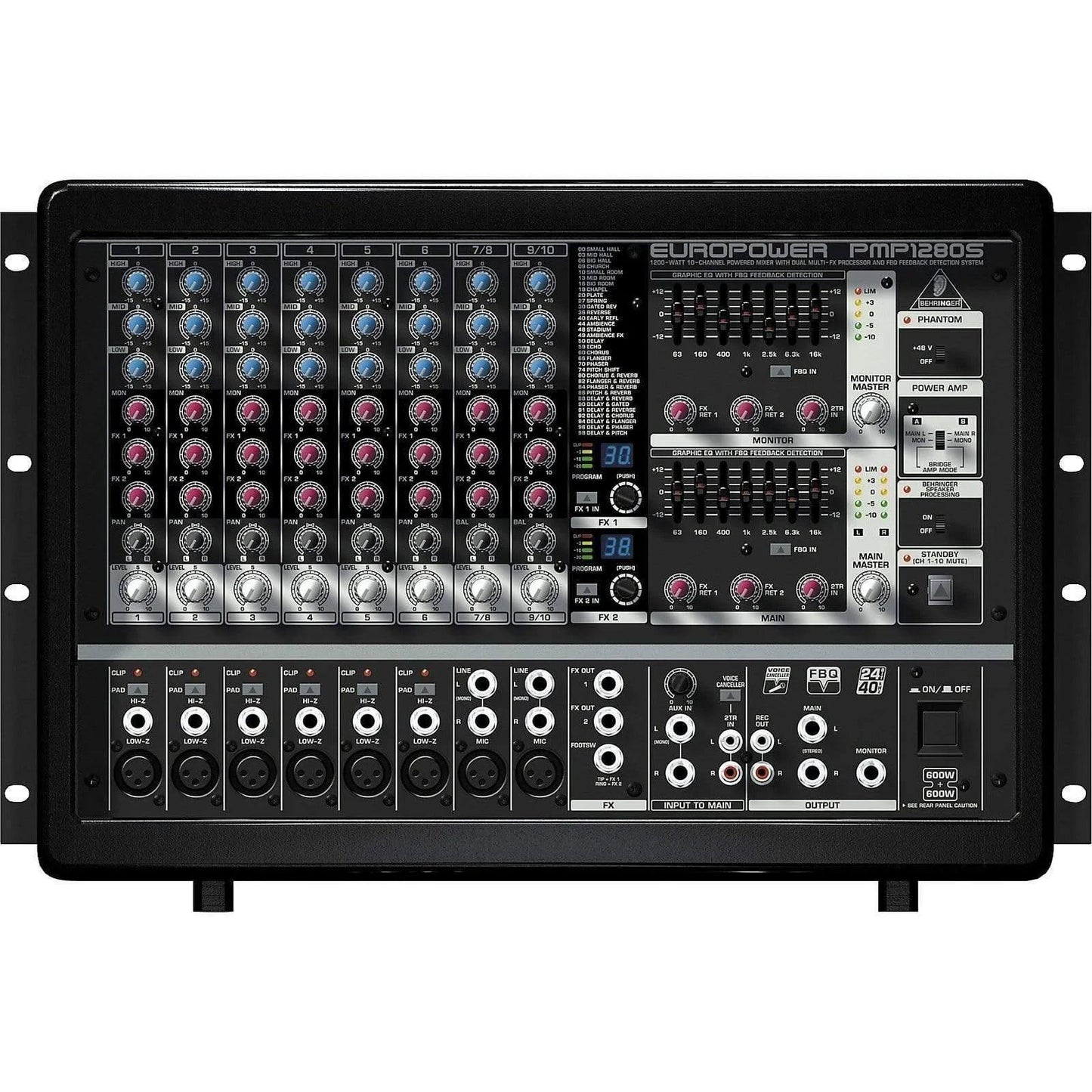 The EUROPOWER PMP1280S mixer delivers 1,200W (bridged mono) of massive power and incredible performance through new-generation amplifier technology, crystal-clear sound plus an ultra-compact and lightweight design. 24-bit stereo effects processors, Invisible Mic Preamps (IMPs), Voice Canceller, and more round off this impressive audio mixer. Please note that this mixer requires speaker cables with Speakon connectors.