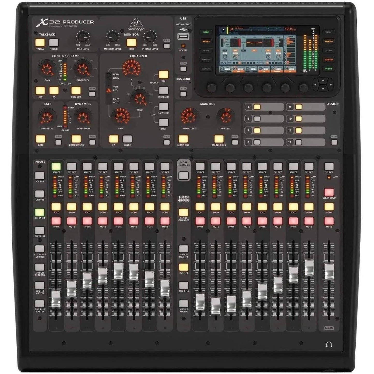 The X32 PRODUCER can be your top-notch studio recording interface today, control a complex theatre production tomorrow, or sit securely in your side-rack while you mix your band's club gig from your iPad. A revolution in its own right, the incredible X32 PRODUCER combines the finest analogue I/O and powerful digital connectivity with ample processing for 40 channels, 25 buses and up to 152 signal sources. You can easily control every parameter of the mix directly on the X32 PRODUCER using the 800 x 480 graphics UI, but the awesome flexibility of networked remote control literally opens up an amazing world of possibilities. Use our X32-EDIT PC/Mac/Linux application, X32-MIX for iPad, X32-Q for iPhone/iPod touch and X32-Q for Android to control the mix from anywhere in the room. You can even run multiple instances of these powerful apps at the same time, giving your performers the ability to mix their own personal monitors on-the-fly! With its 16 MIDAS-design mic preamps and dual AES50 ports, the X32 PRODUCER can support up to six S16 digital stage boxes for massive I/O connectivity. Ultra-flexible routing options and 8 powerful stereo FX engines make the X32 PRODUCER the ideal choice for handling audio now and as your needs grow.