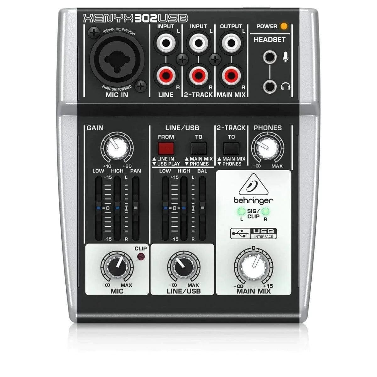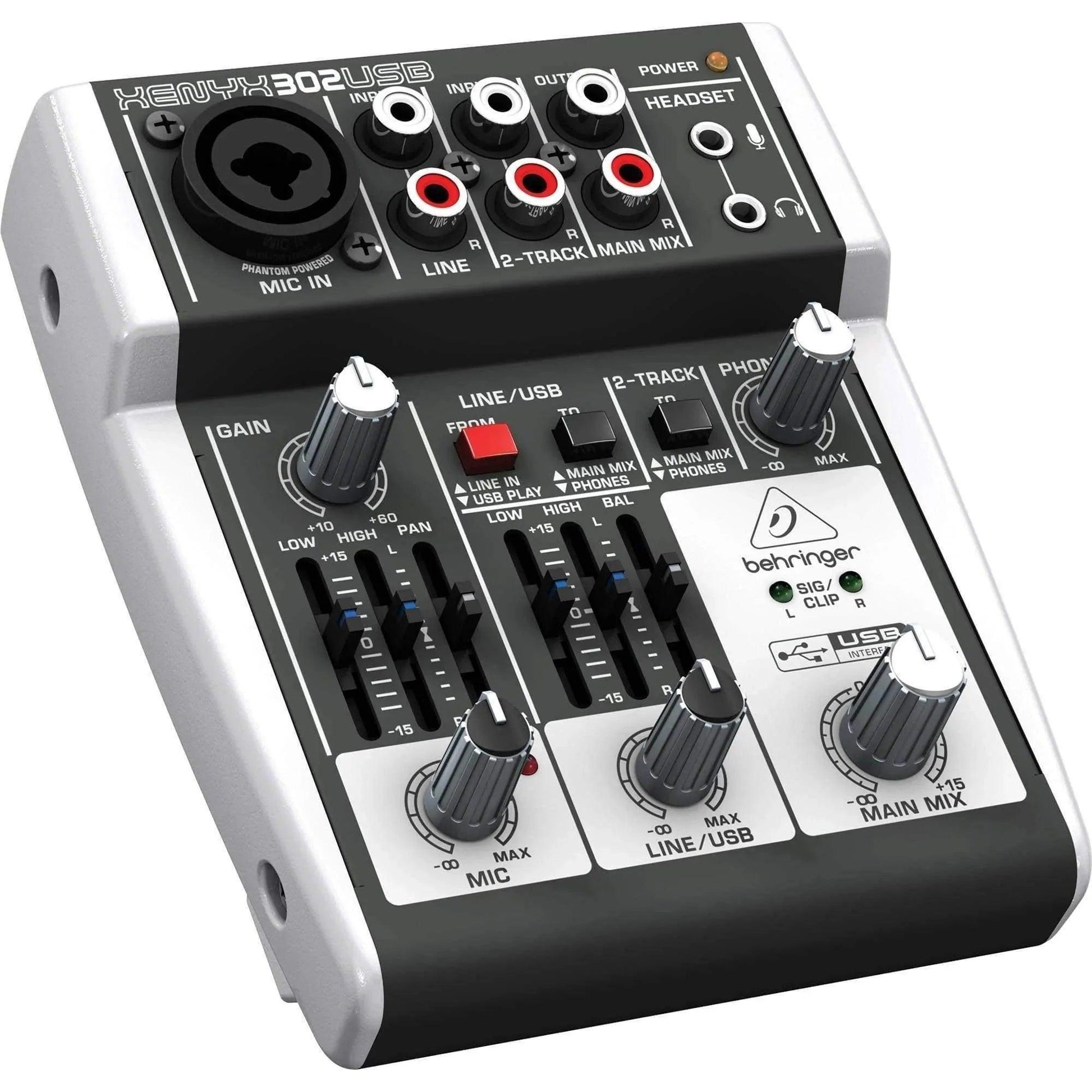 The XENYX 302USB is ideally suited for a small home studio or the on-the-go recording enthusiast. At approximately 4" long and 5" wide (117 x 135 mm), the XENYX 302USB features one of our state-of-the-art, phantom-powered XENYX Mic Preamps, and XLR combination input and a stereo USB/Line channel plus a dedicated 2-Track input. And since the XENYX 302USB can be powered directly via your laptop's USB socket the perfect portable mixer for podcasting and impromptu recording! As a bonus, the ultra-compact 302USB comes with all the recording and editing software needed to turn your computer system into a complete, high-performance home or portable recording studio.