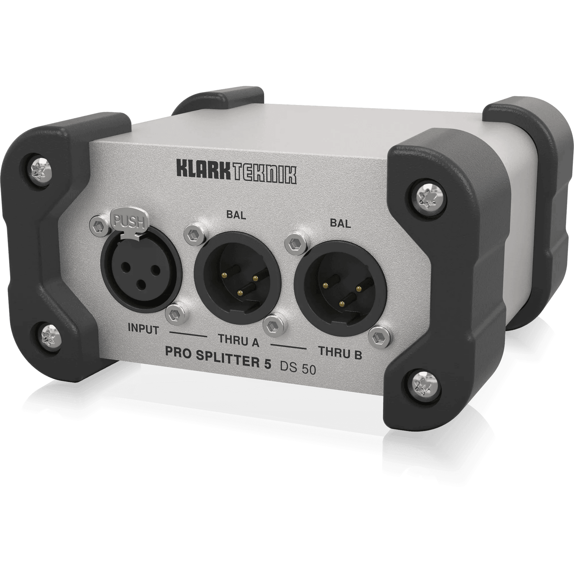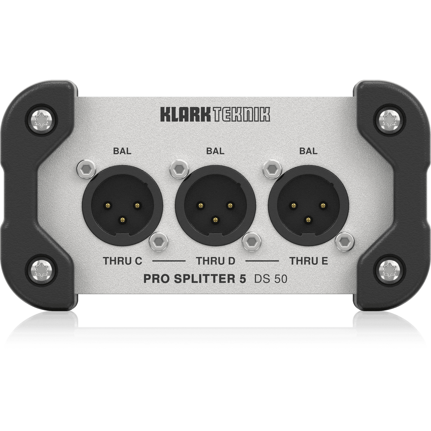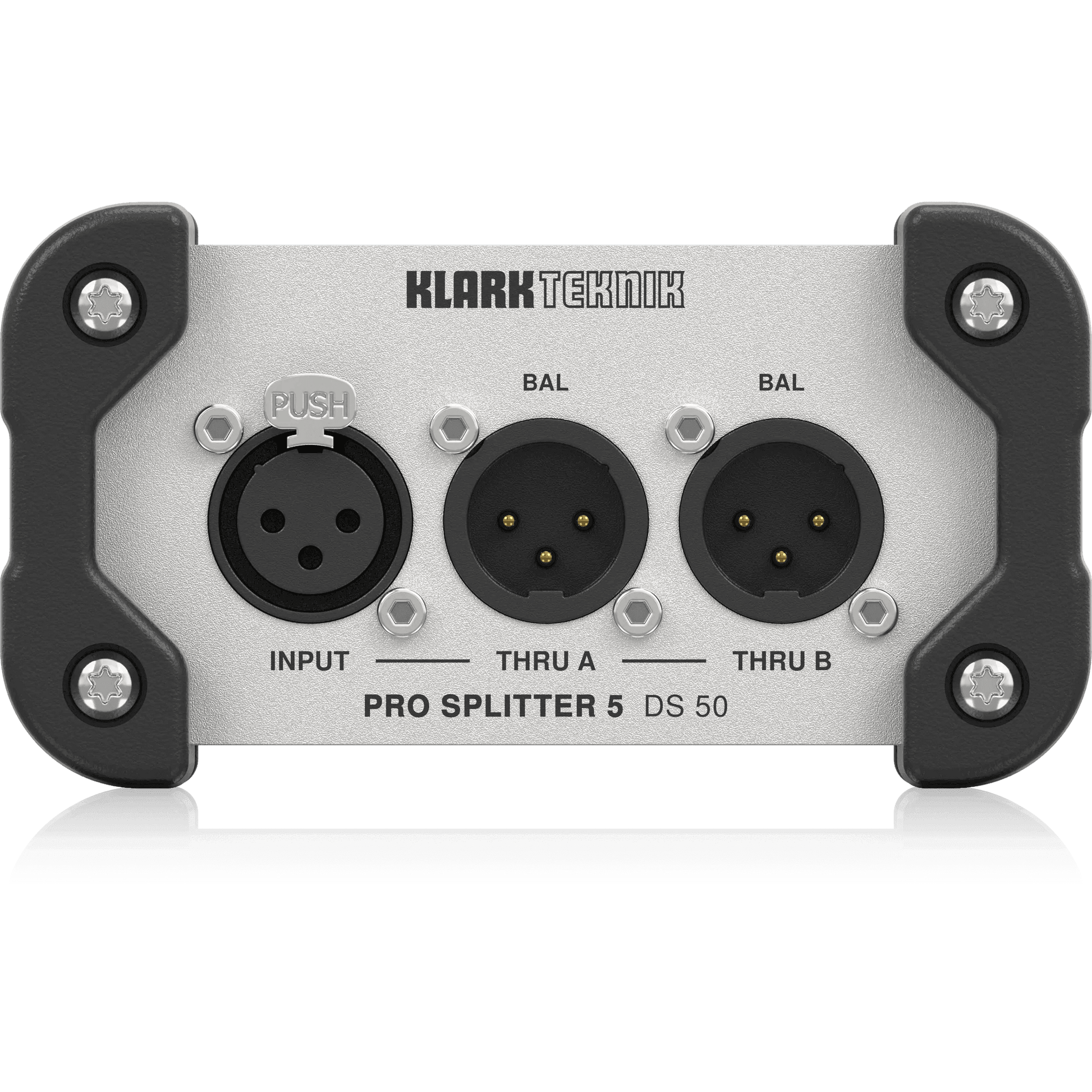 Building on KLARK TEKNIK�s storied legacy of highest-quality signal processing devices, the DS 50 PRO SPLITTER 5 offers the same high headroom, dynamic response and sonic clarity you have come to expect. DS 50 is ideal for routing balanced XLR signals to as many as 5 discrete destinations, including FOH and monitor consoles, active monitor loudspeakers, broadcast mixers, and more. A passive device, the DS 50 does not require any form of external power, making it the perfect solution for a wide range of professional audio and multimedia applications.