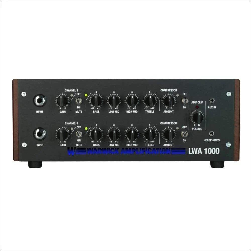 Warwick's first entry into the field of lightweight Bass Amps is the 1000W LWA1000. This convenient package of 2 input channels with full EQ section and compressor on each channel combined with a power amp stage that is designed using the latest advances in so called Class D technology gives you a chameleon that can be used in pretty much any situation. The configuring of the Amp to give 500W at 8 Ohms and 1000W at 4 Ohms makes it possible to have the power you need for the gig regardless of the size of the venue. The 2 inputs lets you have 2 Basses plugged in and ready to go with their own unique settings already dialed in.The Pre amp is based on Warwick signature Class A/Low Z circuitry made famous with the WA and BC series of amps. This technology makes sure you have the warm huge distortion free sound you desire without disturbing noise. The advancement in Power supply technology and error correction circuitry in the Class D power amp used in the LWA 1000 allows for tighter and stronger bass response than previously possible in this type of amps. Making it comparable in sound to much heavier Class A/B amps.