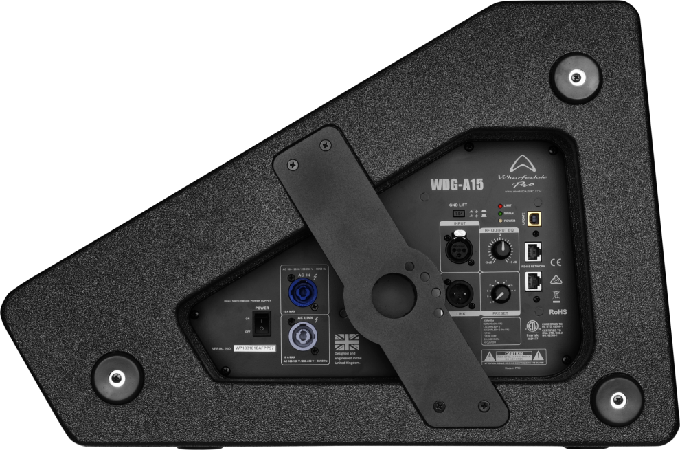 Active models feature 8 x DSP presets for easy hands on control, but can also be managed using RS485 protocol with the Wharfedale Pro PRO=LINK software. This allows for detailed remote preset editing and system management. There is also a practical HF Output EQ knob for any real-time tweaks needed on-stage.
